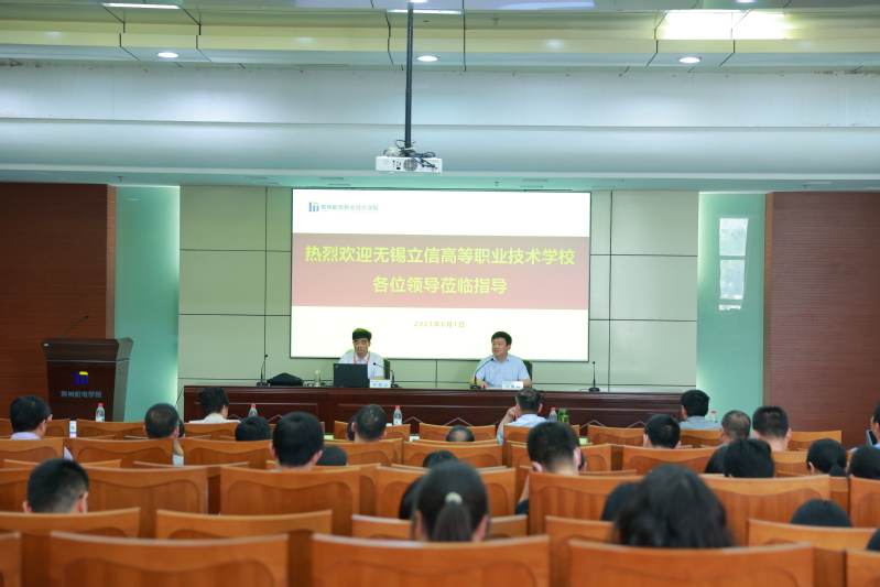 6月1日下午,无锡立信高等职业技术学校校长、党委副书记马建春一行47人来校学习交流。我校党委副书记、校长许朝山对马校长一行来访表示热烈欢迎,并简要介绍常州职教园区基本情况以及学校近几年发展情况。