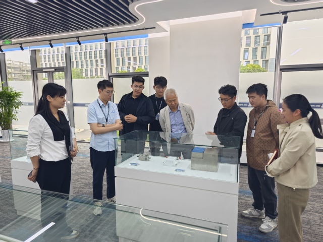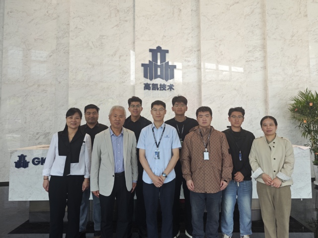 在高凯精密,公司人力资源部经理张子建热情接待刘江一行。刘江一行参观了高凯精密的展厅,正在高凯实习的学院SGAVE班学生陈梦宇、姚俊炎、王忠强等同学向老师们详细介绍了公司的各类产品及其相关应用场景。同学们自信且专业地讲解,不仅展示出他们在实习期间对业务知识的扎实掌握,更是让老师们直观感受到中德SGAVE教学改革在实践应用方面所取得的成果。
