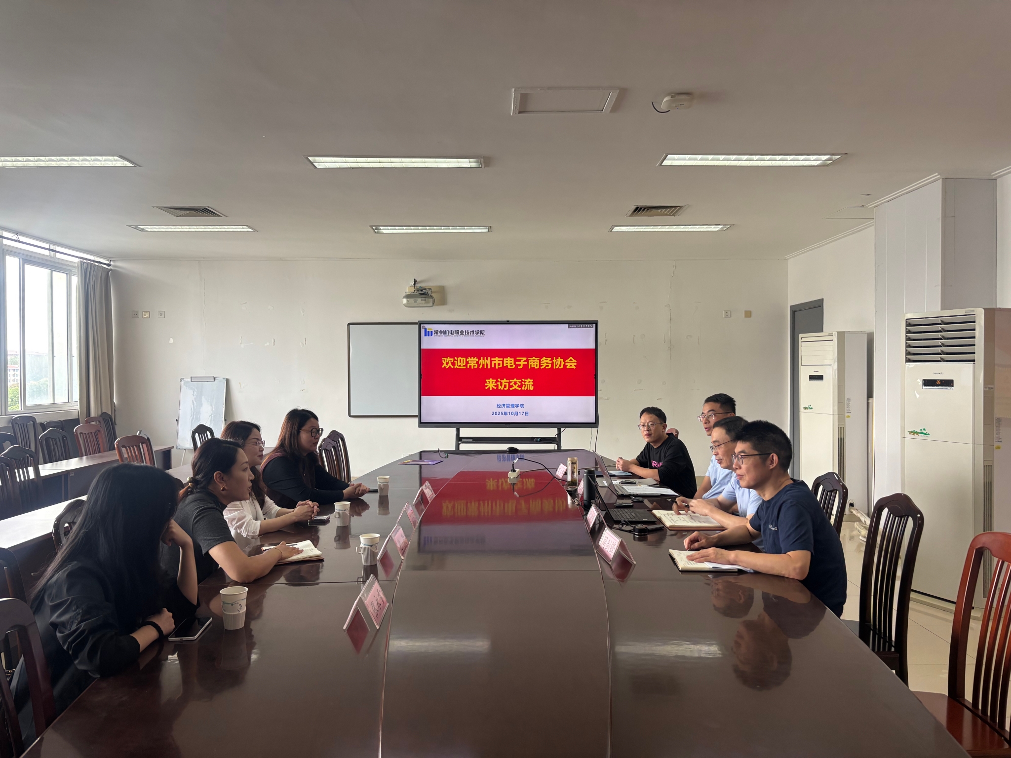 10月17日,常州市电子商务协会秘书长韩东燕携江苏常亮数字科技集团有限公司经理王慧、常州品德数码科技有限公司经理时艺涵一行来我校交流。经济管理学院党总支书记陈建新、副书记甘迎春、电子商务教学团队主任周剑锋、跨境贸易教学团队主任荣玉伟接待来访。