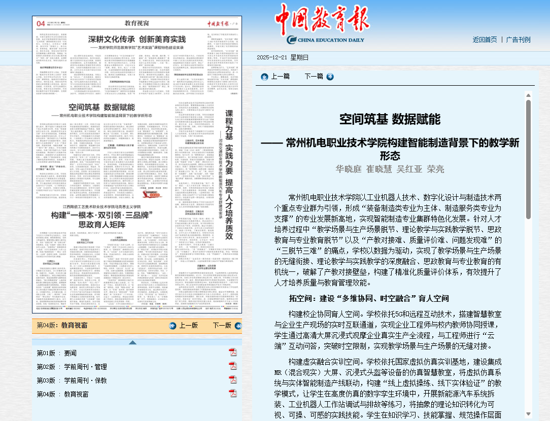 空间筑基 数据赋能——常州机电职业技术学院构建智能制造背景下的教学新形态