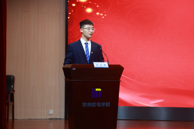 交通工程学院轨交供电2231班学生樊书桥作为学生代表献辞。他感谢老师们给他鼓励、伴其成长,让他从懵懂无知走向自信成熟,更让他深刻理解了“知行并进,智造未来”的学校精神,认识到自己肩上的责任和使命。他将以更加优异的成绩向学校献礼,用更加扎实的专业知识和技能回报母校、奉献社会。