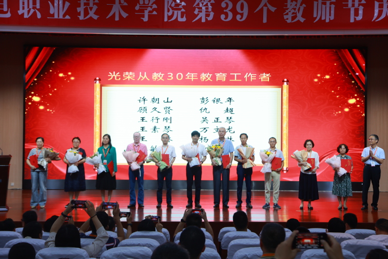 校长许朝山发表讲话。学校始终坚持把教师队伍建设放在突出重要位置,通过完善参与管理机制,凝聚人心;畅通多元成长渠道,激励人心;营造幸福温馨氛围,留住人心。努力在全校推动形成尊师重教、关心关爱教师成长发展的良好风尚。他提出三点希望:一是聚焦“学思用贯通、知信行统一”,坚定不移筑牢理想信念,做政治过硬的“严师”;二是聚焦高素质技能人才培养,坚定不移落实立德树人根本任务,做师德高尚的“良师”;三是聚焦学校高质量发展内在要求,坚定不移提升教学科研能力水平,做业务精湛的“名师”。