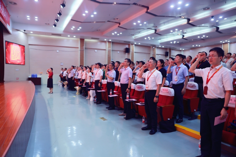 龙城十佳教授、机械工程学院党总支书记陈叶娣领誓,全体与会教师在铮铮誓言中,深刻领悟教师的责任和使命,进一步坚定职业信念和职业操守,争做“四有”好老师,将提振精神,奋楫扬帆,为“双高计划”终期验收,创建“职教本科”做出贡献。