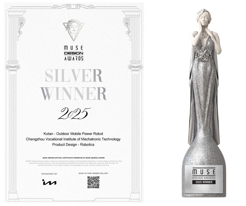 近日,由创意设计学院教师陈龙、康晨指导,我校2022级工业设计专业学生邓子依的作品《Kutan - Outdoor Mobile Power Robot》从全球100多个国家数万件参赛作品中脱颖而出,荣获2025年美国缪斯设计奖(MUSE Design Awards)银奖及美国好设计奖(American Good Design)金奖,在国际设计舞台上展现了我校师生的优秀创意与设计实力,实现了学校在该类奖项上的突破。