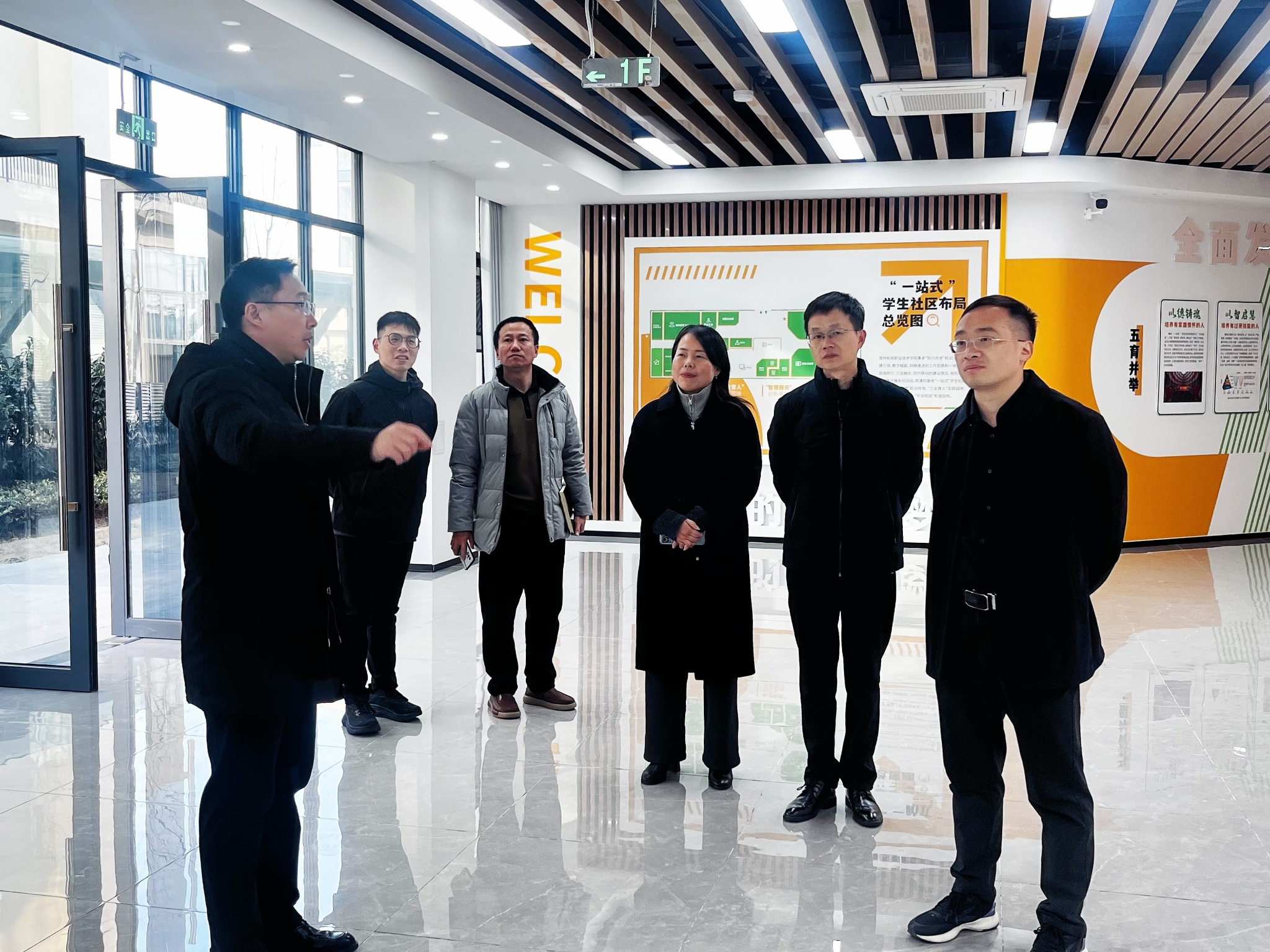陈民一行先后走访了智能制造实训中心、一站式学生社区、体育馆等教育教学场所,深入了解基地在安全稳定、专业布局、学生学习生活及就业等方面的情况,对基地扎根溧阳,服务地方经济社会发展所取得的成绩给予了高度肯定。