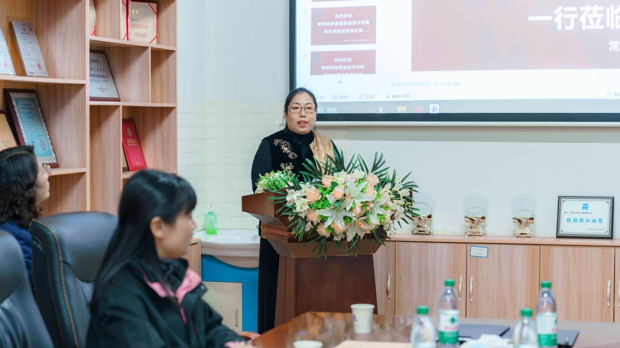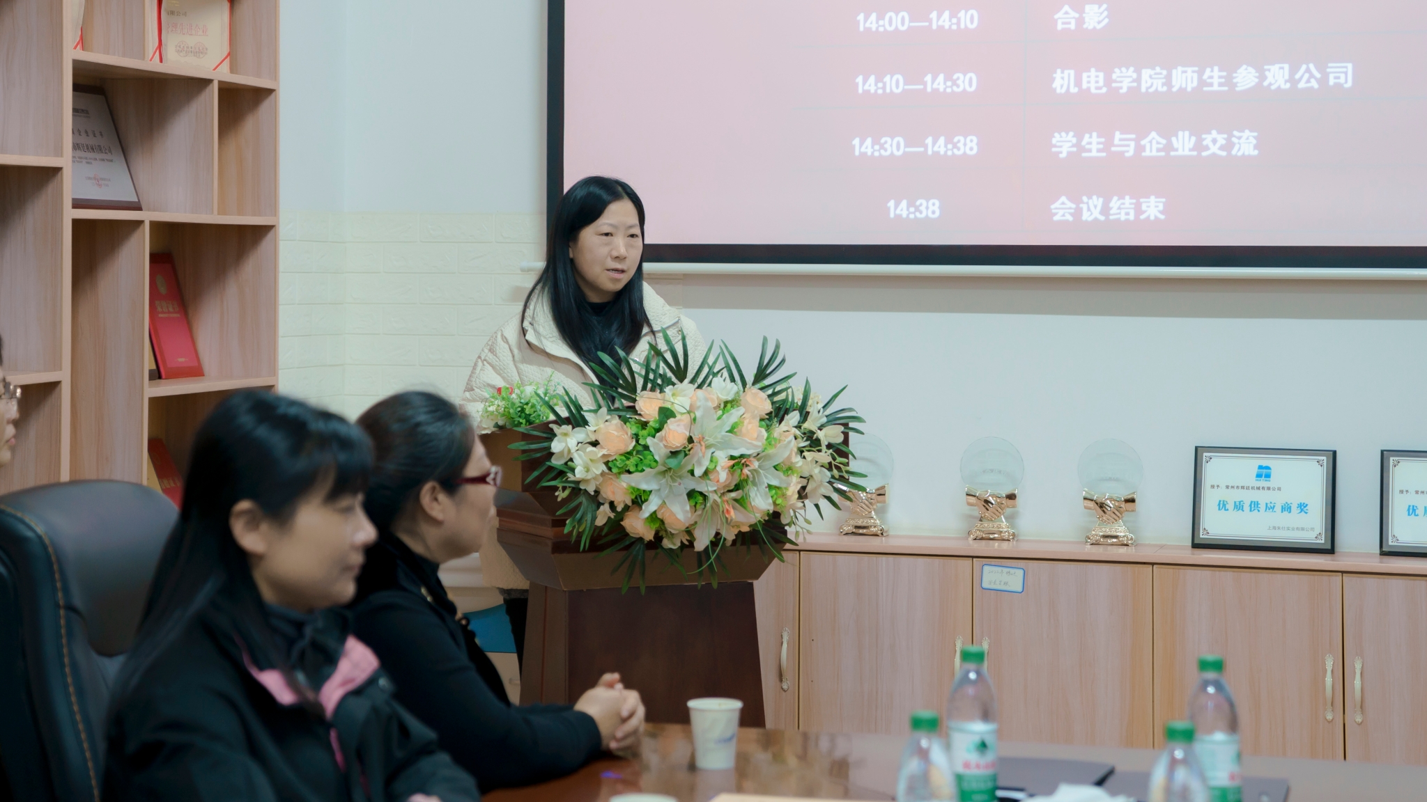辉廷公司董事长尚晓林致欢迎词。她代表公司对陈叶娣一行的到来表示热烈欢迎,希望同学们在双方共建的“立体化”校企合作基地中,按校企双方共同制定的实训课程要求和进度,深入生产一线、贴近实践、认真锤炼专业技能和过硬本领,早日成长为社会和企业需要的复合型专业技能人才,希望校企双方能持续探索CNC精密机床人才培养新模式,实现实训即实战、毕业即就业、上岗即高薪。