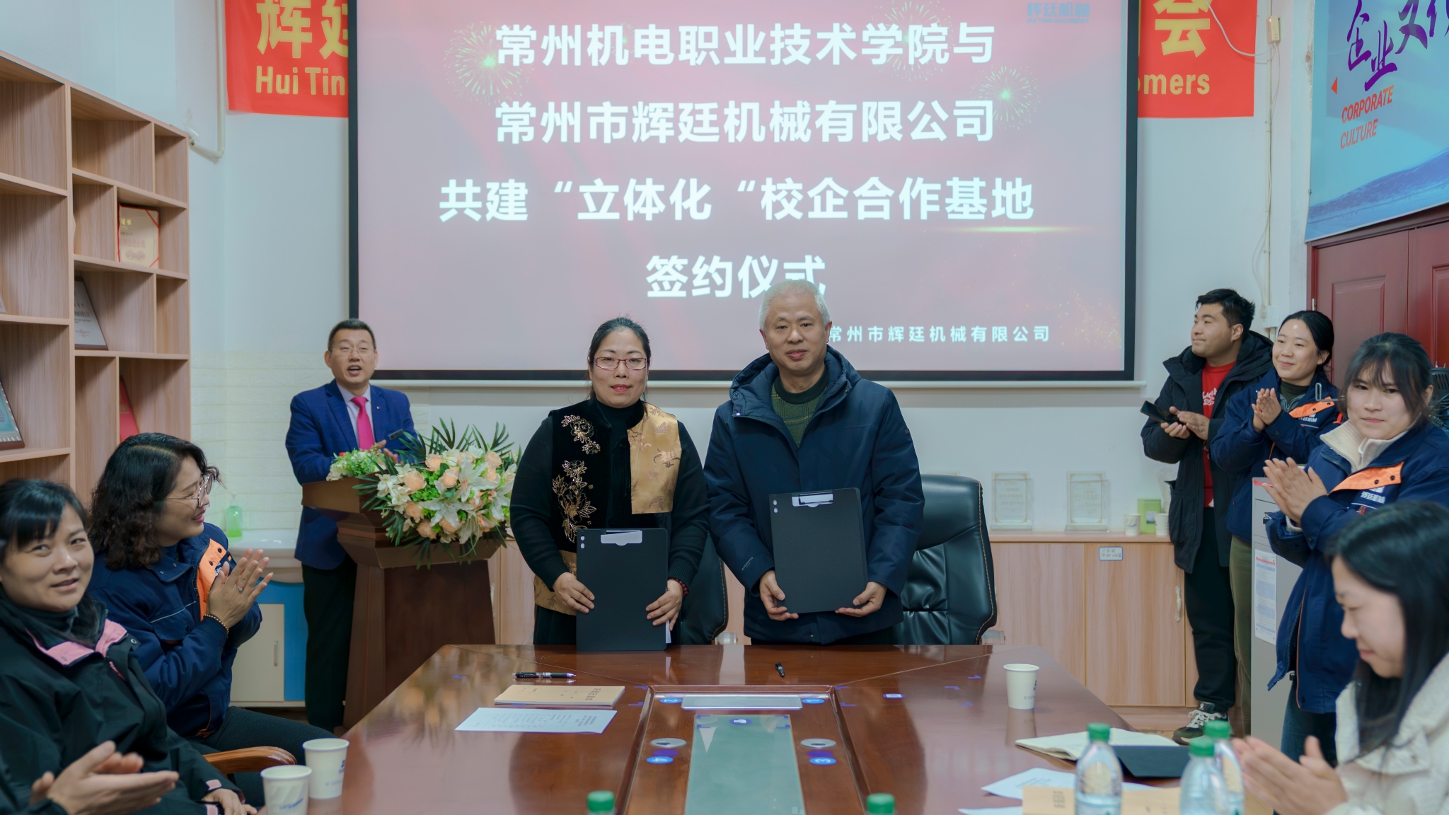 1月8日,机械工程院党总支书记陈叶娣、院长刘江、中德教改团队孙艳芬及师生代表赴常州市辉廷机械有限公司开展校企合作交流并开展“立体化”校企合作基地签约仪式。