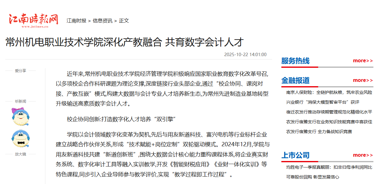 常州机电职业技术学院深化产教融合 共育数字会计人才