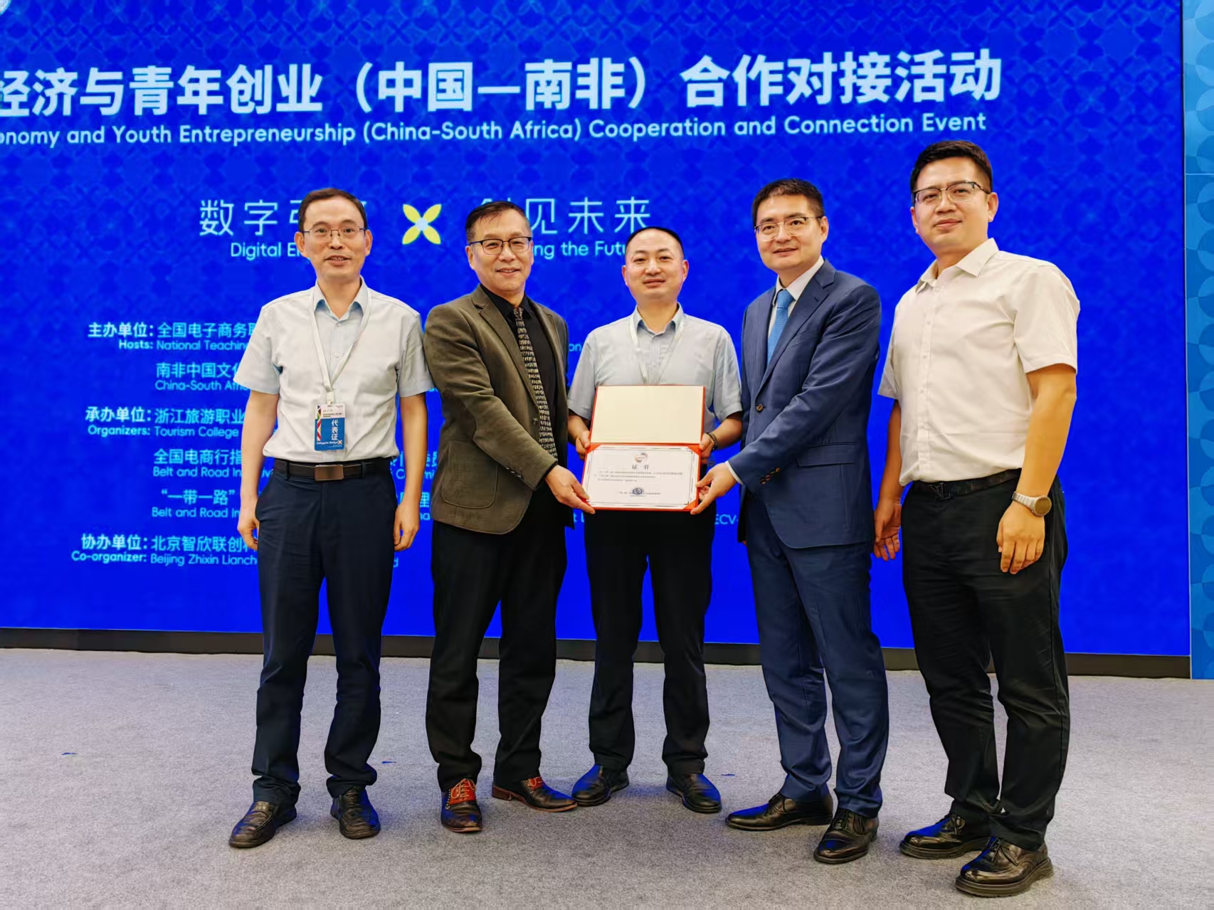 9月24日,由全国电子商务职业教育教学指导委员会(以下简称“全国电商教指委”)与南非中国文化和国际教育交流中心联合主办的数字经济与青年创业(中国-南非)合作对接活动在杭州举行。我校副校长周庆元出席活动,并主持大会交流分享阶段会议。与来自中南非两国的政府代表、职教同仁、企业代表共同探讨数字经济背景下职业教育国际合作的新路径、新机遇。