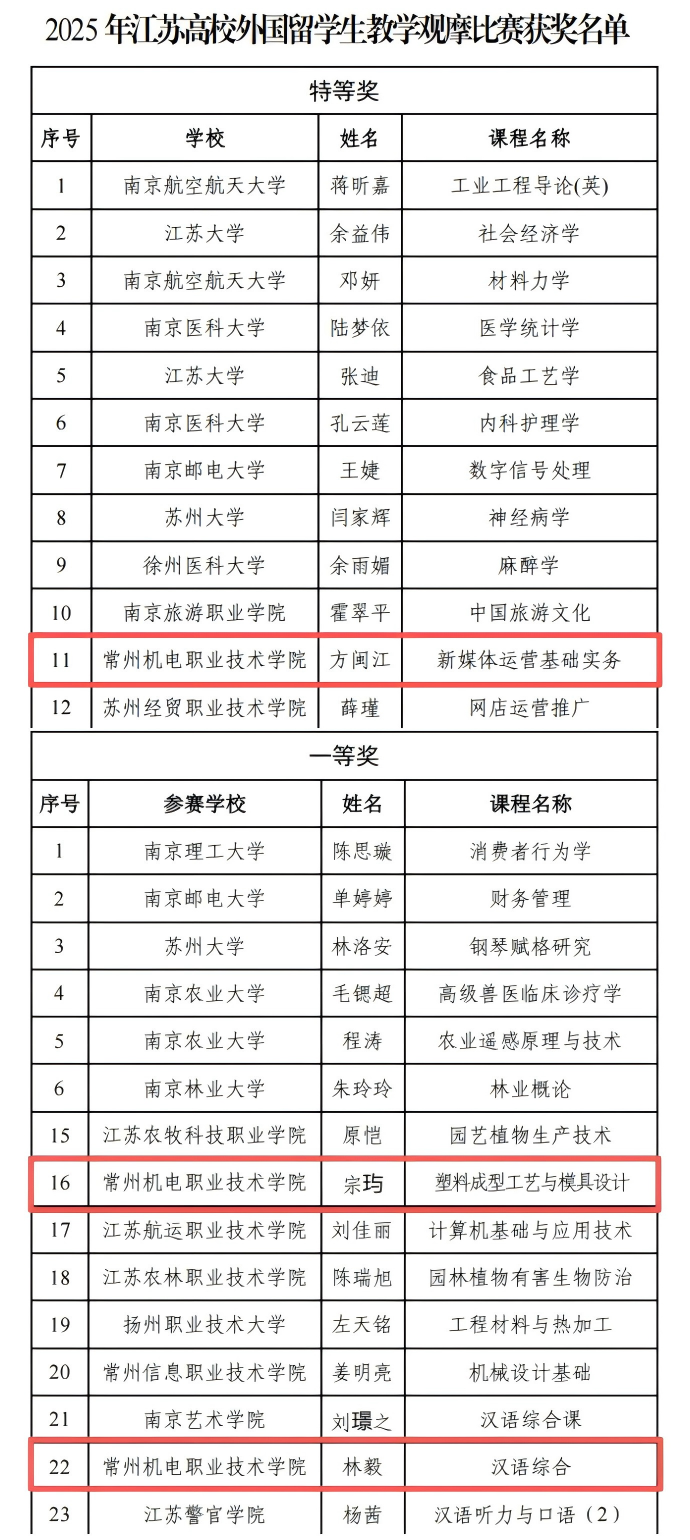 近年来,我校聚焦国际化师资队伍建设,实施教师教学能力提升计划,通过跨境培训、访学,全英文、双语课程建设等多项措施,全面提升教师国际化素养。学校将以此次获奖为契机,深化“留学机电”教育品牌内涵,完善国际化教学与培养体系,为江苏来华留学教育高质量发展贡献力量。