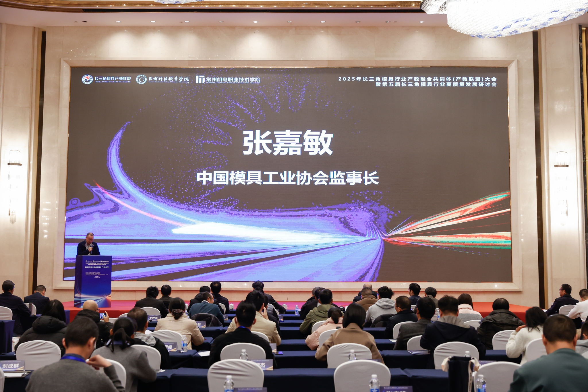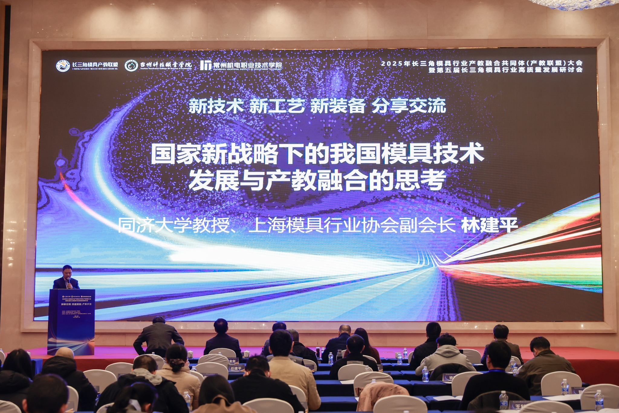 12月4日至5日,2025年长三角模具行业产教融合共同体(产教联盟)大会暨第五届长三角模具行业高质量发展研讨会在常州召开。本次会议由长三角模具行业产教融合共同体主办,我校与台州科技职业学院、江苏省模具行业协会联合承办。中国模具工业协会监事长张嘉敏,我校党委书记许朝山、副校长周庆元,台州科技职业学院副校长徐森富出席,沪苏浙皖三省一市行业协会代表、高校学者、企业负责人、专家等近200人参加了会议,共话模具产业智能化转型与高素质技术技能人才培养新未来。