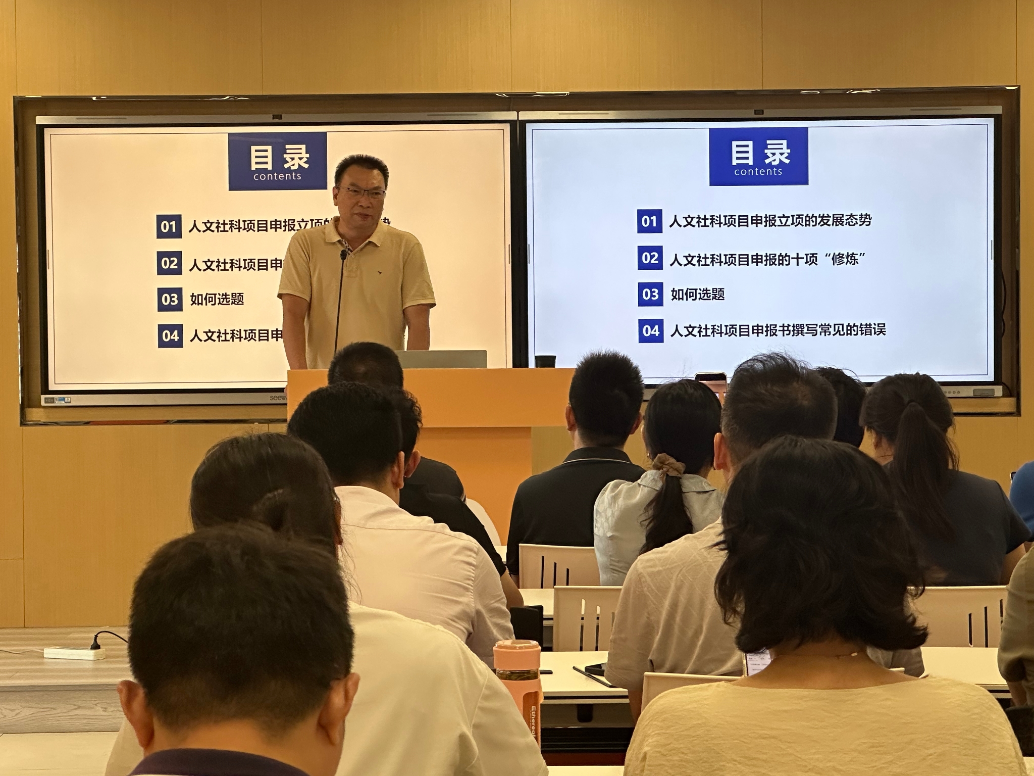 刘奉越以《高级别人文社科项目申报技巧》为题,系统介绍了当前人文社科项目申报的宏观趋势与核心要素,并重点围绕选题创新、文献综述方法、申报书撰写规范等关键环节,结合丰富案例进行了深入浅出的讲解。他特别针对申报过程中常见却易被忽视的关键问题,提出了具体可行的解决策略,为参会教师提供了扎实的“实战”指导。整场讲座内容既有理论高度,又贴近实际需求,现场交流踊跃,反响热烈。