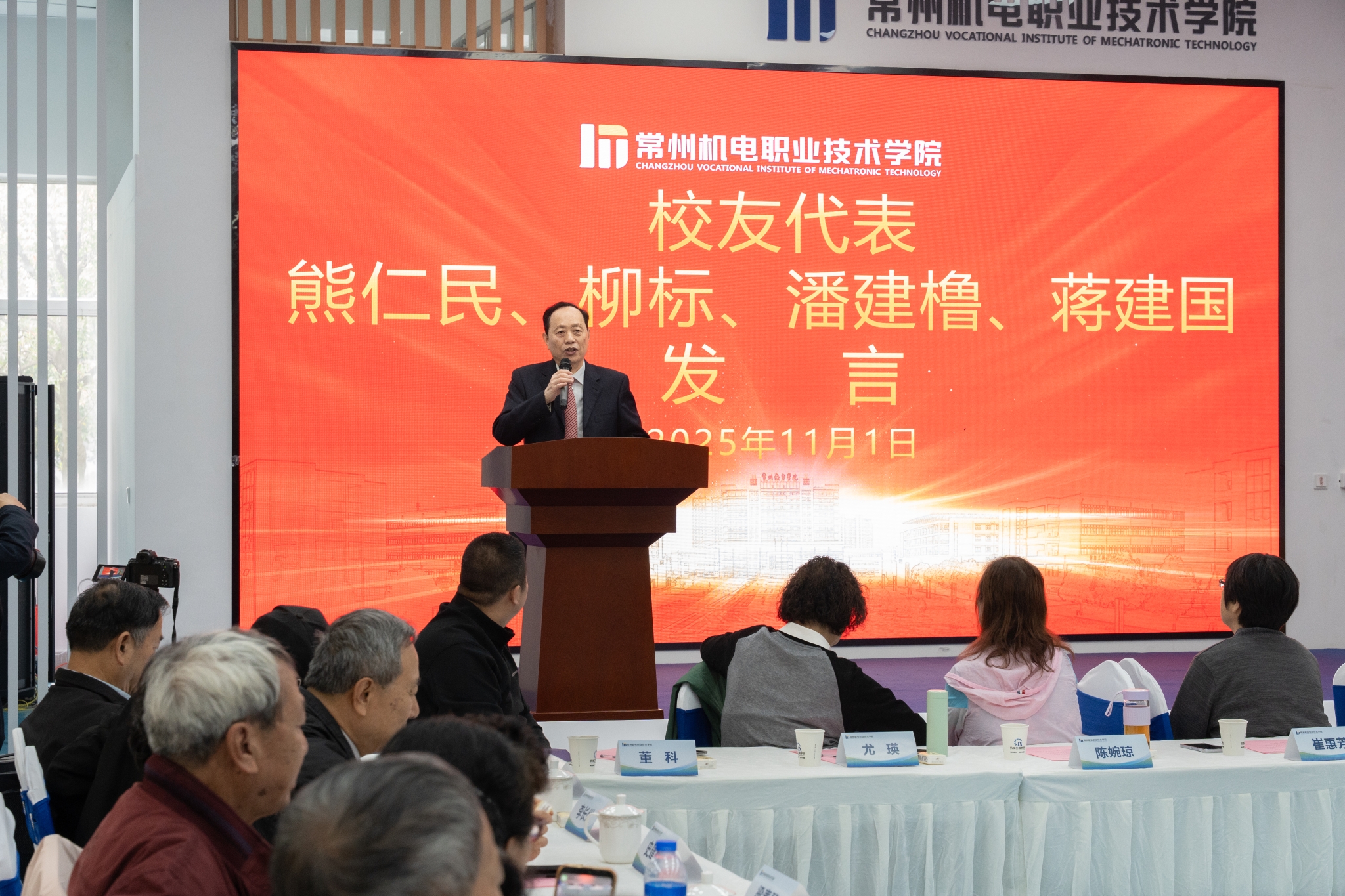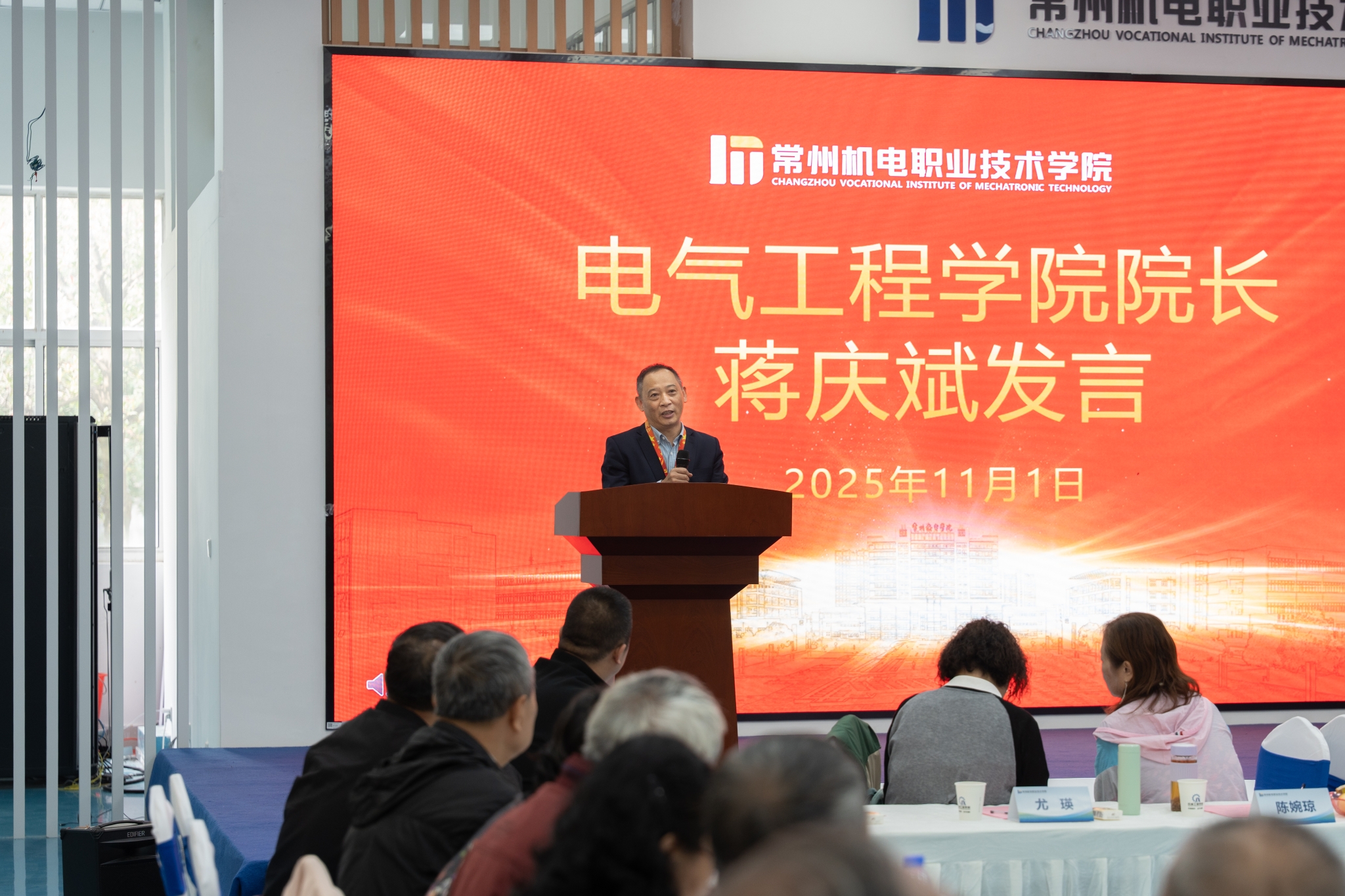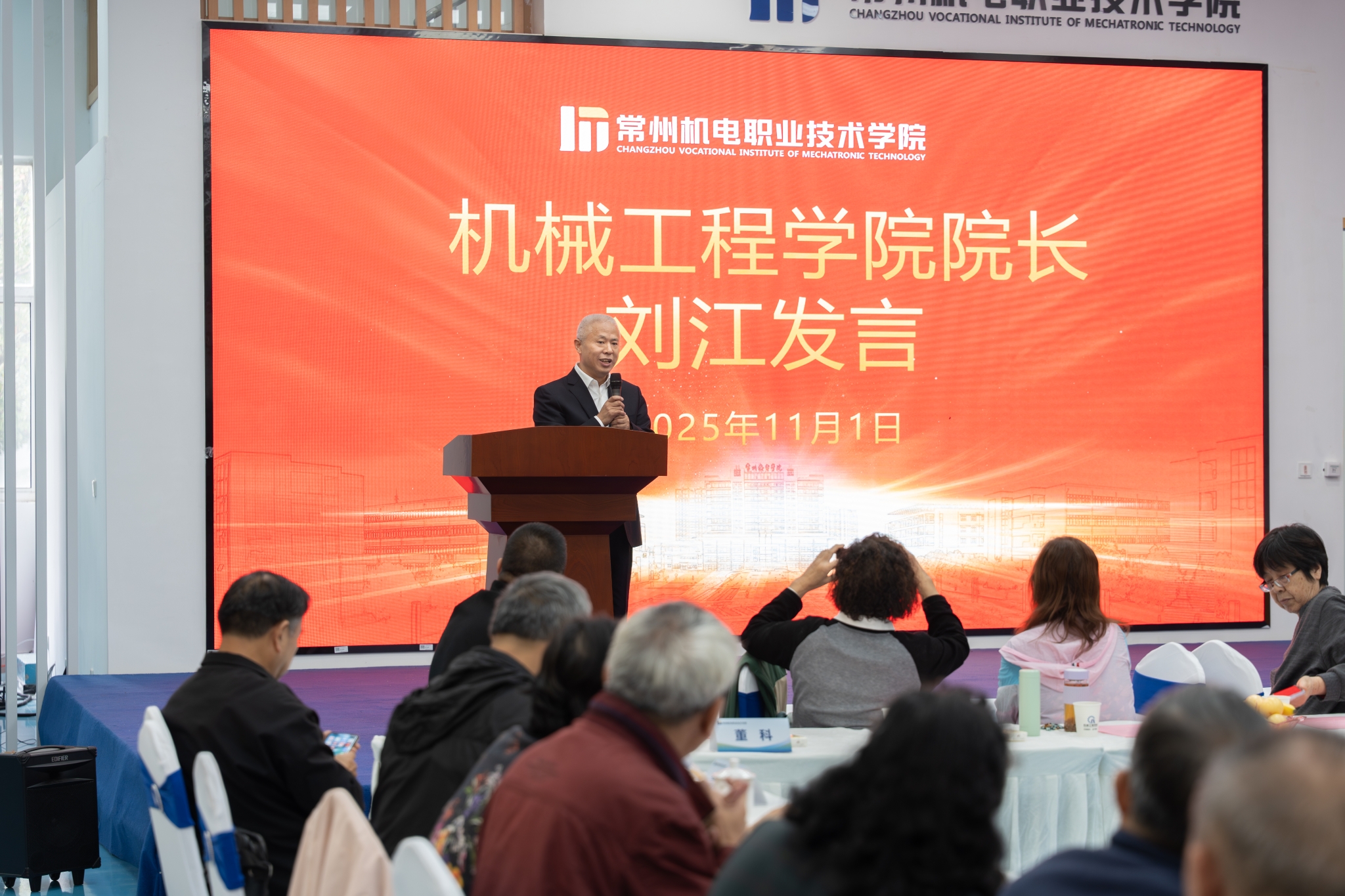 刘江、蒋庆斌分别代表机械、电气工程学院发言,回顾了两个学院的发展历程并介绍了在教学、科研与社会服务方面取得的成果。