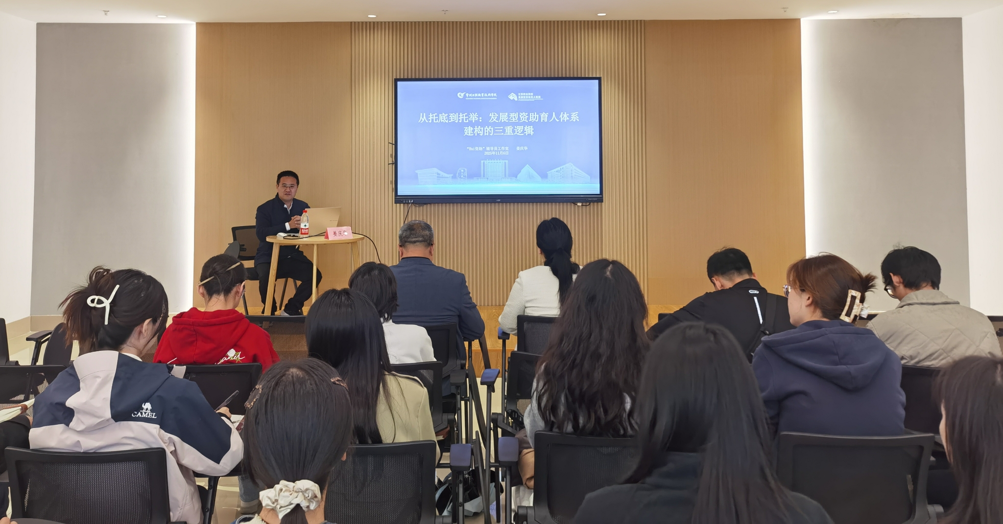姜庆华深耕高校学生资助与思政教育多年,有丰富一线经验和系统理论研究。讲座中,他围绕资助育人体系的“历史、理论、实践”三重逻辑对学生资助育人工作展开详细解析,分享了常州工程职业技术学院的优秀育人实践案例。