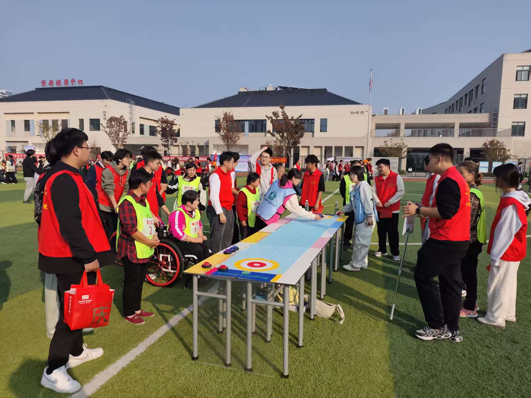 11月16日,高鹏志愿服务团30名志愿者为市残疾人运动会提供全程护航服务,以“一对一”精准帮扶模式,助力32名残疾人运动员完成开幕式展演、旱地冰壶与飞镖等竞技项目及颁奖环节。