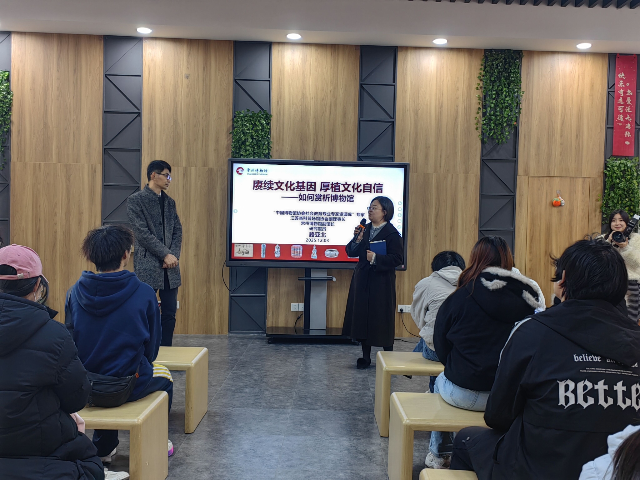 “博物馆是连接过去、现在与未来的文化桥梁,其价值不仅在于文物收藏,更在于文化传承与公共教育。”常州博物馆副馆长路亚北在《赓续中华文脉 厚植文化自信——如何赏析博物馆》报告中,系统阐述了博物馆的赏析方法与文化意义。他从理解博物馆的功能与定位、博物馆赏析的实践路径、高校师生如何高效利用博物馆三个方面向师生作了介绍。路亚北强调,艺术设计专业学生唯有深入解码传统文化基因,才能在当代语境中实现创造性转化,创作出兼具文化厚度与时代生命力的设计作品。