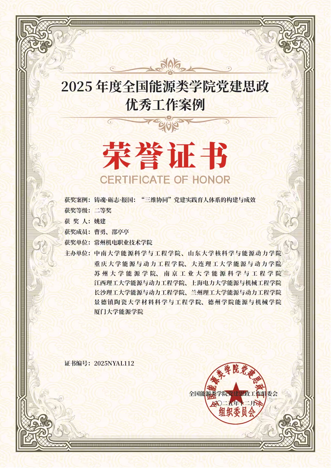 12月1日,2025年度全国能源类学院党建思政工作案例评选结果公布,我校模具技术学院党总支报送的《铸魂•砺志•报国:“三维协同”党建实践育人体系的构建与成效》案例荣获二等奖。