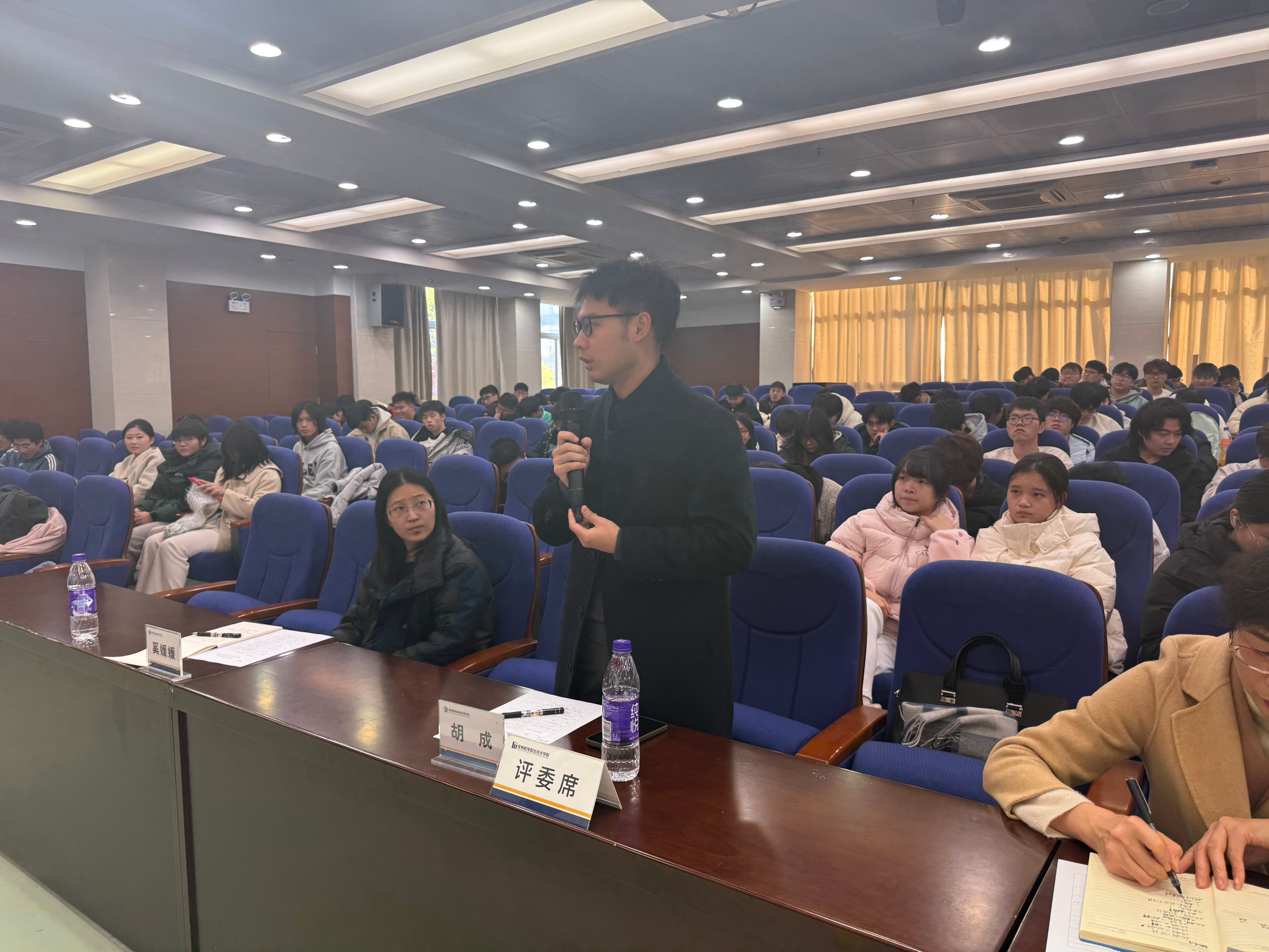 经前期初赛、复赛角逐,电气工程学院、机械工程学院辩论队进入冠军争夺战,经济管理学院、信息工程学院辩论队进入季军争夺战。两场焦点比赛辩题分别为“整顿网络‘键盘侠’,平台封号还是法律追责更有效”“如果终其一生是个普通人,更应该专注于眼前的小幸福还是追逐远方大梦想”,对阵双方引经据典、情理交融,展现出清晰的逻辑与扎实的学识。最终,电气工程学院、机械工程学院、经济管理学院辩论队分获冠亚季军。