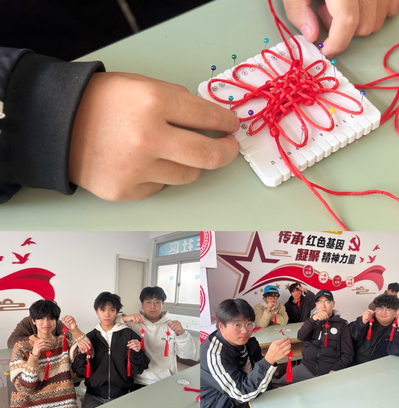 学生在老师的指导下学习中国结的制作技巧,在反复调整中体会匠人精神,在经纬交错间理解非遗文化中蕴含的民族智慧与精神力量。每一枚成型的中国结,都凝聚着专注与耐心,成为劳动价值与匠心传承的具象表达。