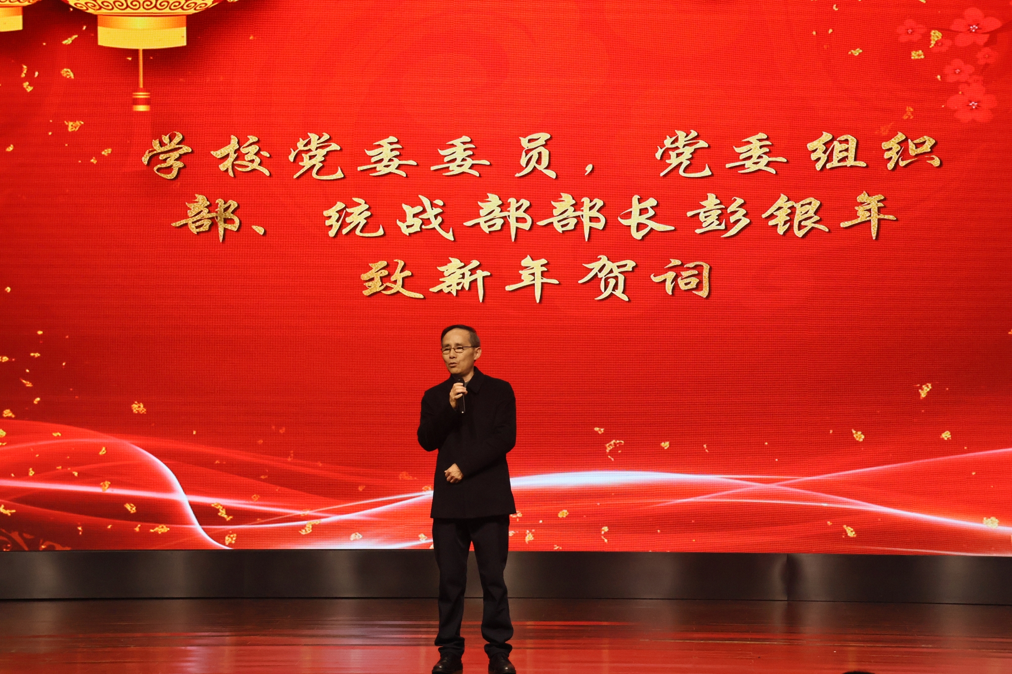彭银年发表新年寄语。他对机械工程学院过去一年在教学科研、人才培养、学科建设等方面取得的丰硕成果表示肯定,向辛勤耕耘的全体教职工和奋力拼搏的同学们致以诚挚的新年祝福与衷心感谢。彭银年指出,“骐骥驰骋”象征着机械学子勇往直前的闯劲与精益求精的匠心,“智造未来”承载着机械工程学院深耕工科领域、培育创新人才的使命担当。他希望,全体师生在新的一年里,以梦为马、不负韶华,在机械工程的广阔天地中勇攀高峰,为学院发展与国家智能制造事业贡献更多力量。