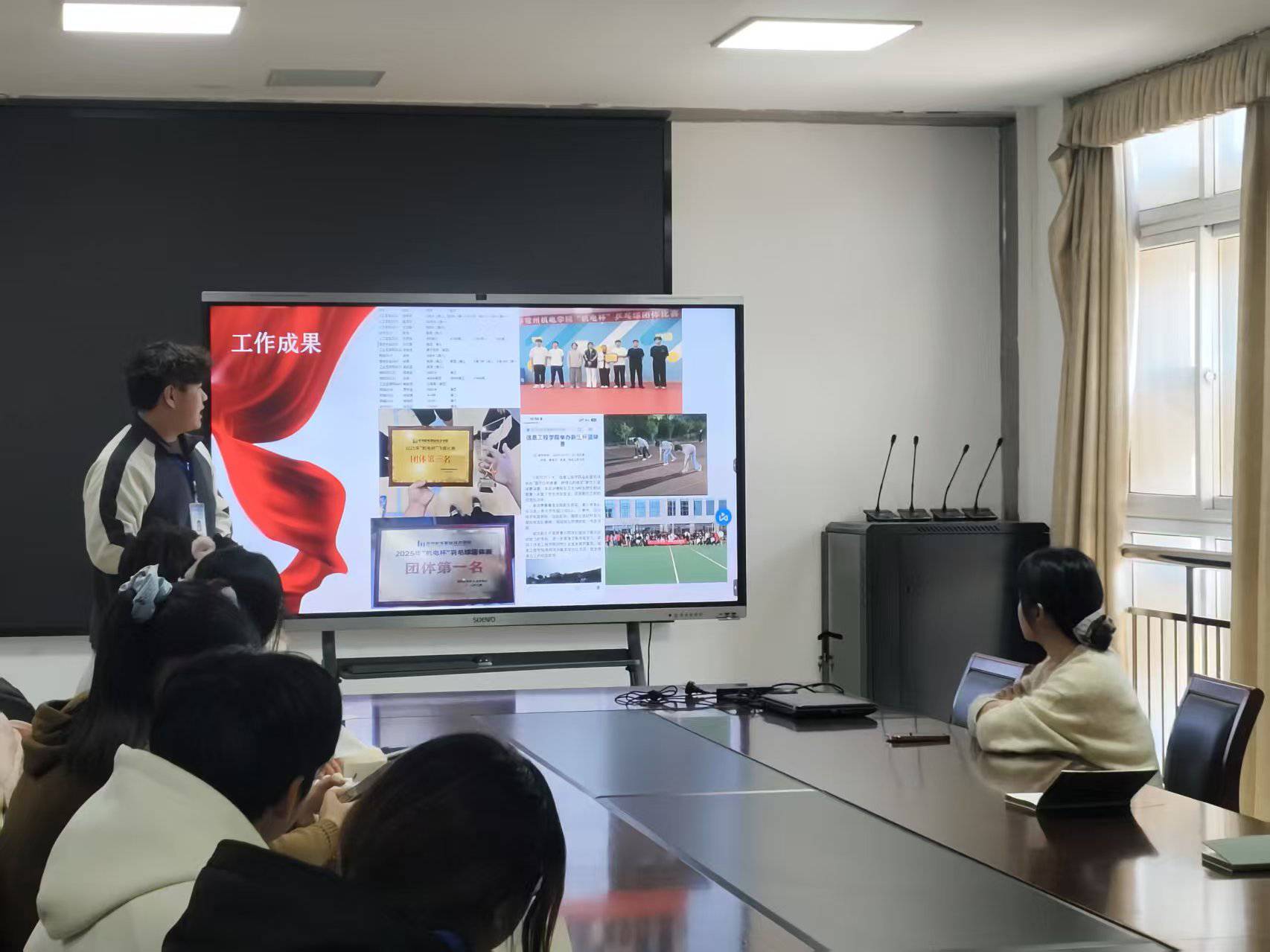 述职环节中,信息工程学院团委、学生会各部门负责人依次上台,通过翔实数据和具体案例,围绕思想引领、组织建设、学术科技、校园文化、权益服务等方面汇报学年工作成果,并剖析不足、提出改进方向。现场进行了民主测评。