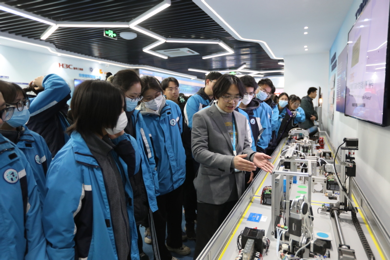 在讲解员的带领下,同学们先后参观了常州科教城现代工业中心政校企三方共建共享的实训基地、我校江南装备制造技术产教园、人工智能与工业互联网创新中心、图书馆、体育馆、食堂等学习生活场所,亲身感受职业教育的氛围,加深对职业教育的理解。