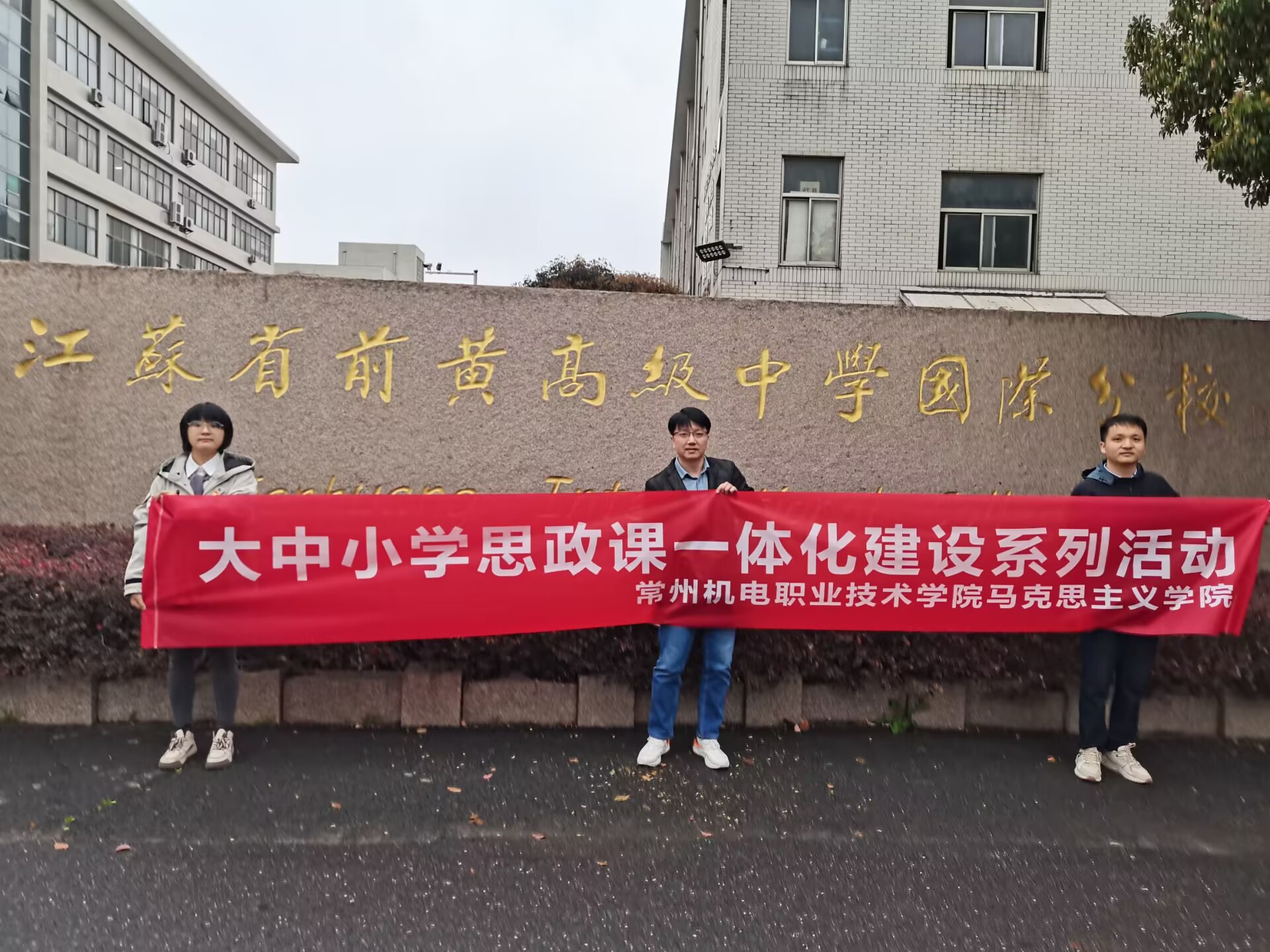 3月23日,马克思主义学院思政教师濮扬、刘兵、王云霞,共赴江苏省前黄高级中学国际分校开展“大中小学思政课一体化建设”调研活动,校团委书记胡慧老师接待并陪同调研。