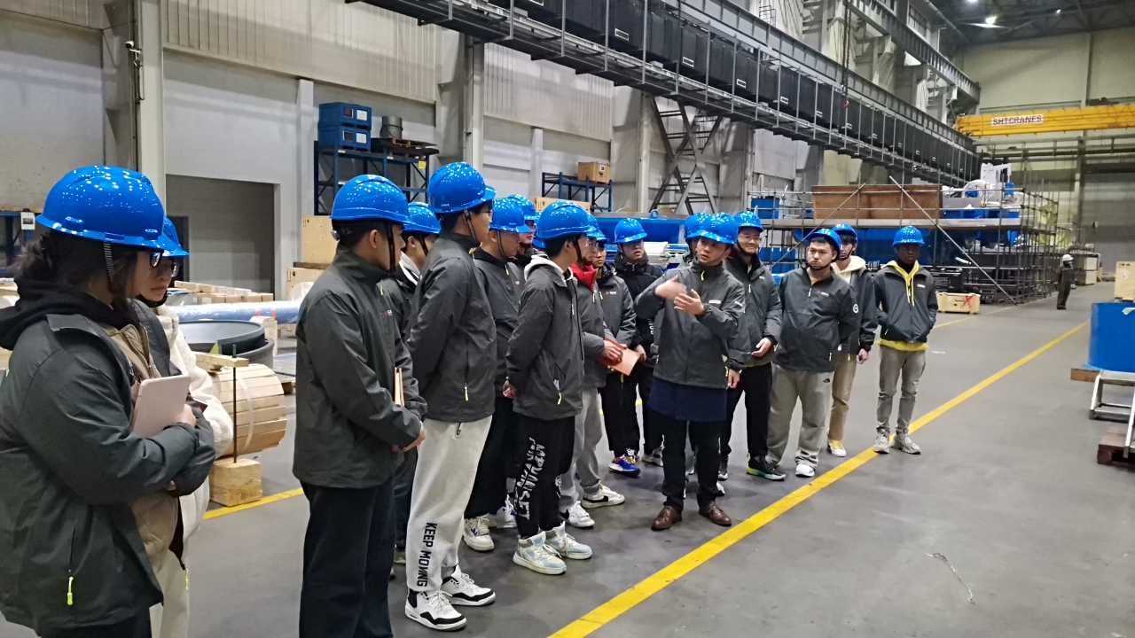 戴劲代表企业对我校访企师生的到来表示热烈欢迎,他介绍了曼恩机械的发展历程、规模现状、企业文化、人才需求以及发展规划。孙艳芬介绍了我校SGAVE项目的实施情况、人才培养方案、课程体系结构和应用以及机械工程学院产教融合、校企合作的做法。企业EHS工程师蒋丹、PE工程师王翔、HSSE工程师丁利文带领学生参观了生产制造车间,对公司主要产品制造流程、安全管理规范、产品结构设计、岗位职责等情况进行了详细介绍。访企学生认真聆听记录,并与生产经理和工程师、老师开展现场交流。