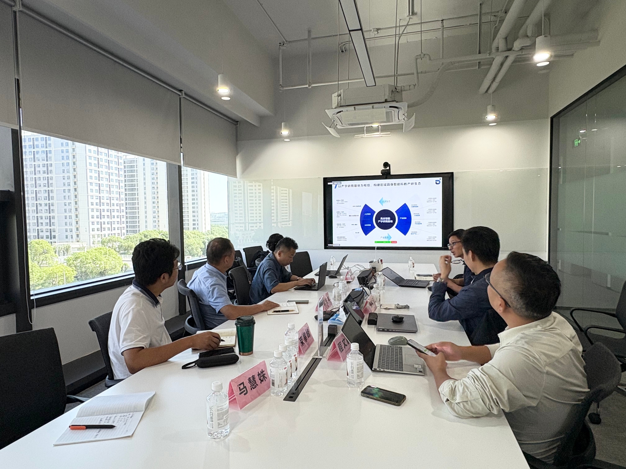 研讨会上,双方围绕智能机器人专业建设、课程开发、实训体系构建、教材编写与推广等议题展开深入交流。刘牧云等介绍了公司在工业机器人领域的领先优势与大模型技术的应用实践,表达了与院校共建实训室、联合开发课程与教材的强烈合作意愿。蒋庆斌希望以此次调研为契机,推动校企在人才培养、课程共建、实训基地建设等方面实现深度合作,共同打造适应产业发展需求的一体化人才解决方案。
