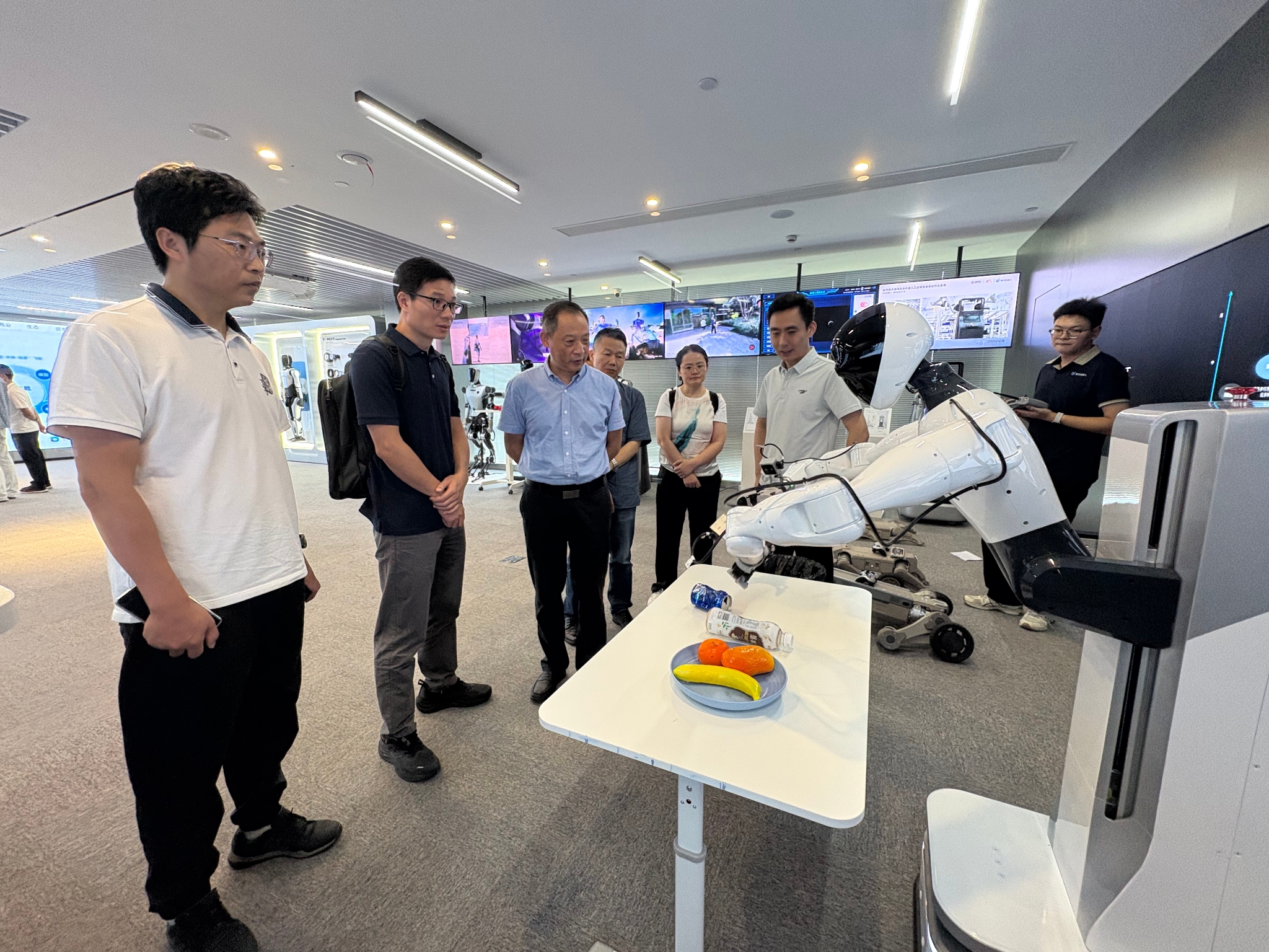 在智元机器人科研教育事业部总经理刘牧云、林顼、程文静等人的陪同下,蒋庆斌一行先后参观了智元机器人数采中心与机器人展厅,深入了解企业在智能机器人领域的产业布局、技术优势与创新成果。
