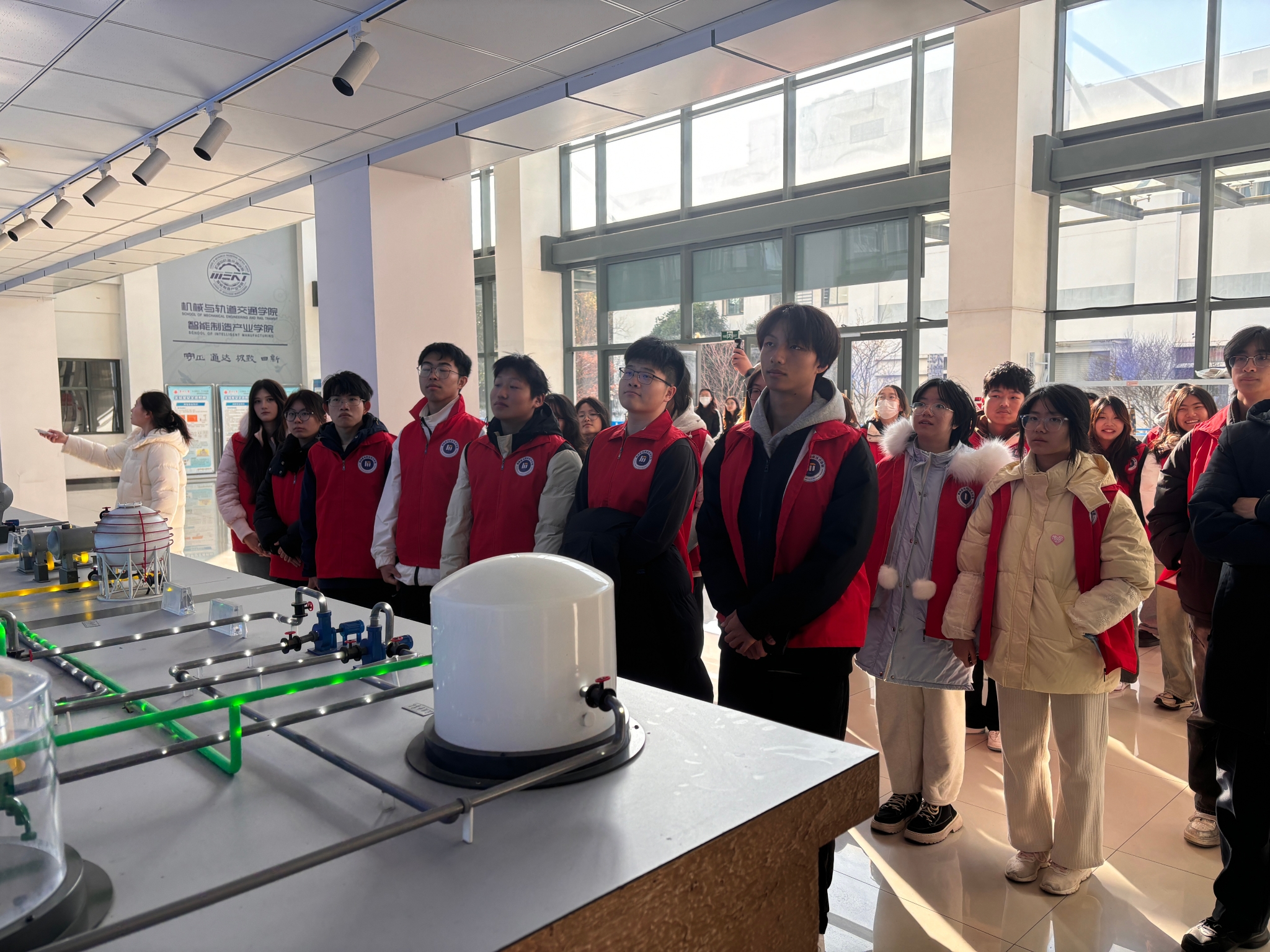 甘迎春一行参观了石油与能源工程实验中心,油气长输管线模拟平台、油气管输工艺模拟机房等实训区域,观看了相关教学视频。