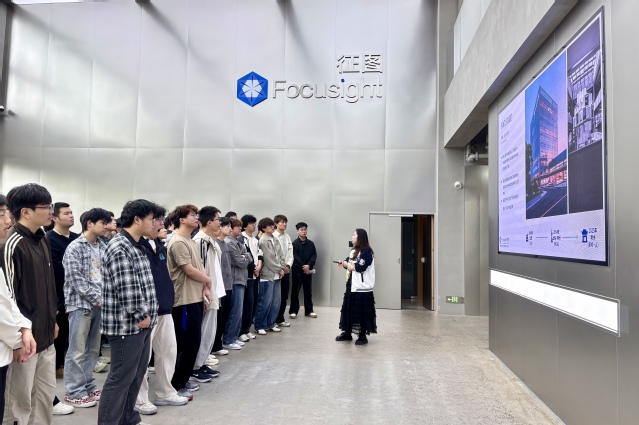 在征图学院培训专员蒋雨希的引导下,师生一行参观了公司及产品展示厅,了解智能检测设备在电子、农产品、新能源汽车、医药等行业的广泛应用。