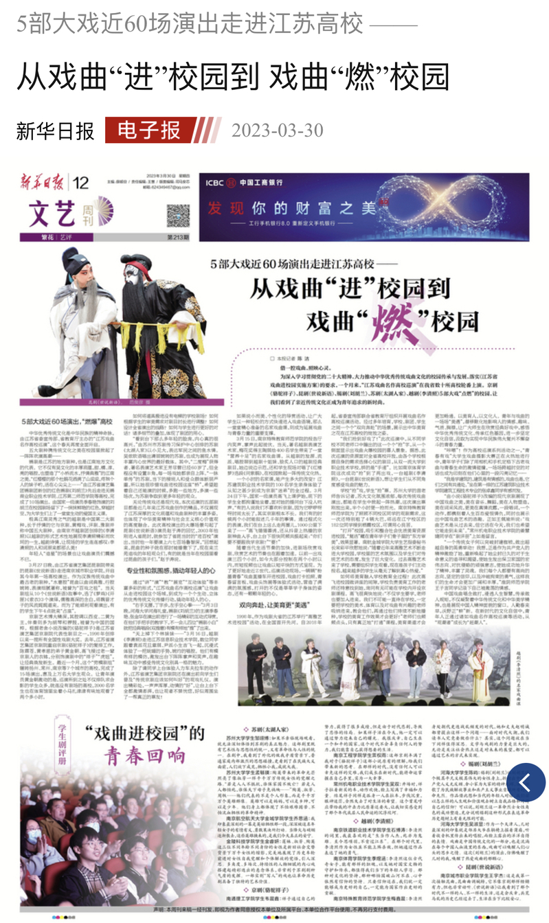 5部大戏近60场演出走进江苏高校 ——从戏曲“进”校园到 戏曲“燃”校园