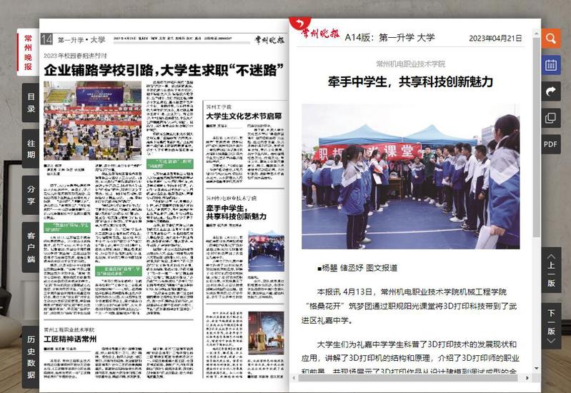 常州机电职业技术学院牵手中学生,共享科技创新魅力