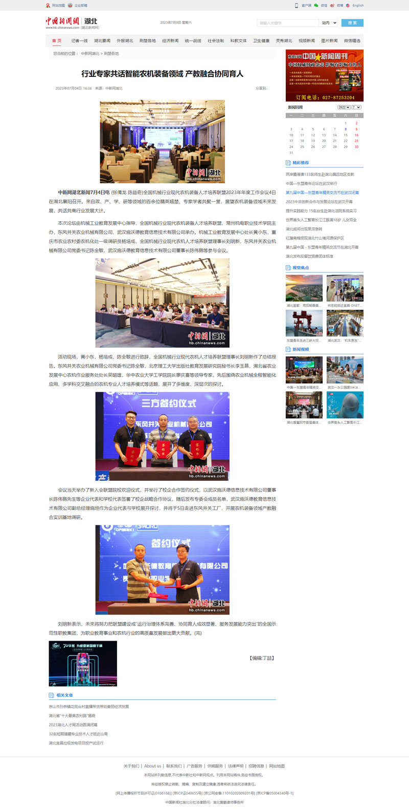 会议当天举办了新入会联盟院校欢迎仪式,并举行了校企合作签约仪式,以武汉施沃德信息技术有限公司董事长陈伟鹏先生等企业代表和学校代表签署了校企战略合作协议,随后发布专委会成员名单,武汉施沃德教育信息技术有限公司副总经理施坦作为企业代表与学校展开探讨,并将于5日走进东风井关工厂,开展农机装备领域产教融合实训基地调研。