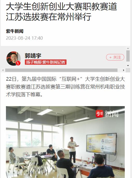 22日,第九届中国国际“互联网+”大学生创新创业大赛职教赛道江苏选拔赛第三期训练营在常州机电职业技术学院落下帷幕。