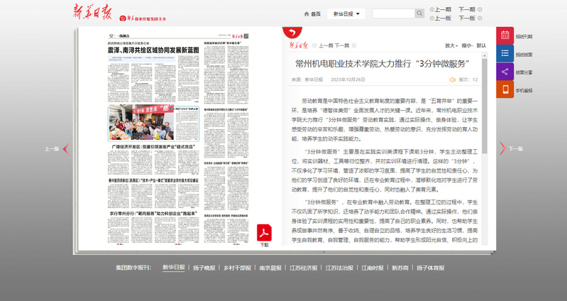 劳动教育是中国特色社会主义教育制度的重要内容,是“五育并举”的重要一环,是培养“德智体美劳”全面发展人才的关键一课。近年来,常州机电职业技术学院大力推行“3分钟微服务”劳动教育实践,通过实际操作、亲身体验,让学生感受劳动的辛苦和乐趣,增强尊重劳动、热爱劳动的意识,充分发挥劳动的育人功能,培养学生的动手实践能力。