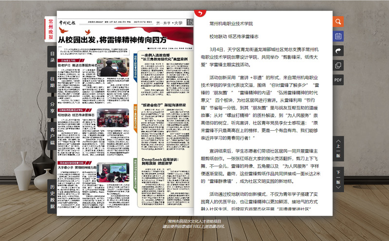 常州机电职业技术学院:校地联动 纸艺传承雷锋志