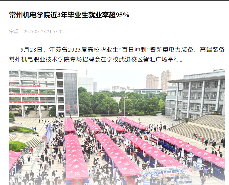 常州机电学院近3年毕业生就业率超95%