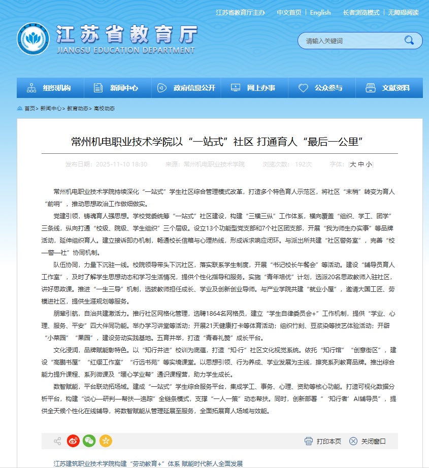 常州机电职业技术学院以“一站式”社区 打通育人“最后一公里”