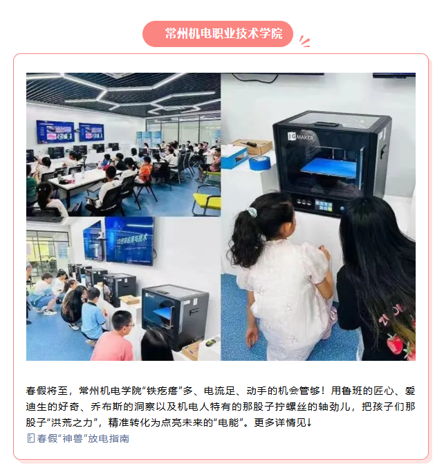 春假将至,常州机电学院“铁疙瘩”多、电流足、动手的机会管够!用鲁班的匠心、爱迪生的好奇、乔布斯的洞察以及机电人特有的那股子拧螺丝的轴劲儿,把孩子们那股子“洪荒之力”,精准转化为点亮未来的“电能”。
