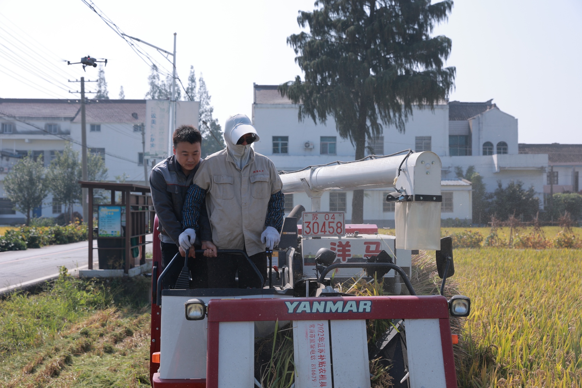 指导联合收割机使用(央广网发 常州机电交通工程学院供图)