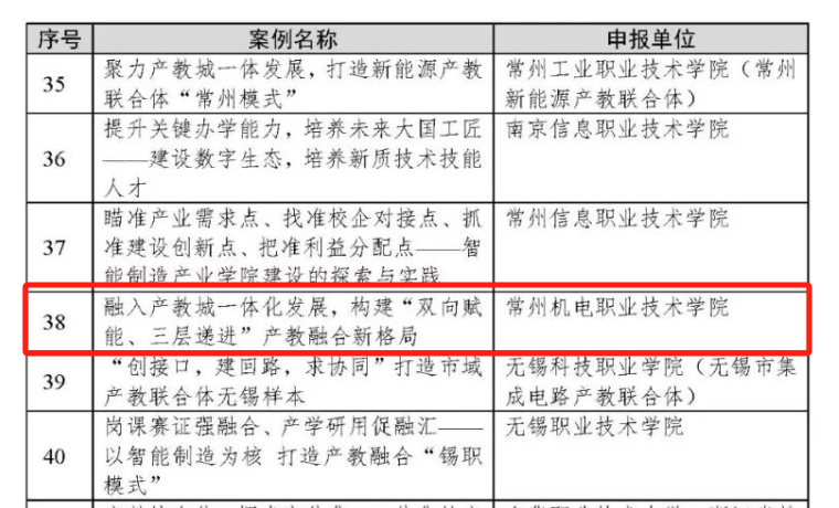 近日,我校报送的《融入产教城一体化发展,构建“双向赋能、三层递进”产教融合新格局》案例入选教育部2024年产教融合、校企合作典型案例。