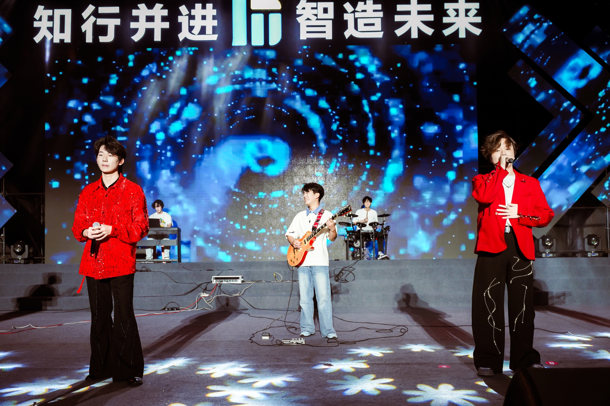第二篇章“绽放·青春华章”聚焦青春多元风采,展现机电学子的蓬勃活力。歌舞《Diamond》诠释了青春光芒如钻石般璀璨夺目;留学生代表带来的舞蹈《舞动四海》,生动展现我校国际化办学氛围与多元文化交融的魅力;齿轮乐队激情献唱《骄傲的少年》《开心往前飞》,以摇滚旋律唱响无畏追梦的青春宣言;舞蹈《花腰傣》淋漓尽致展现民族风情,将美育浸润融入文化传承。
