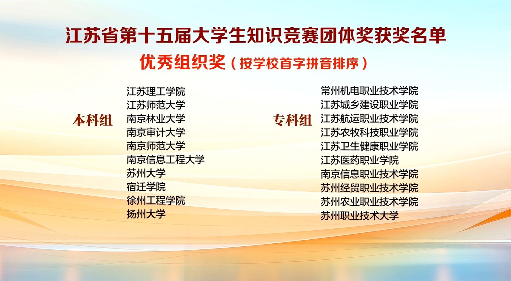我校在江苏省第十五届大学生知识竞赛中获“优秀组织奖”