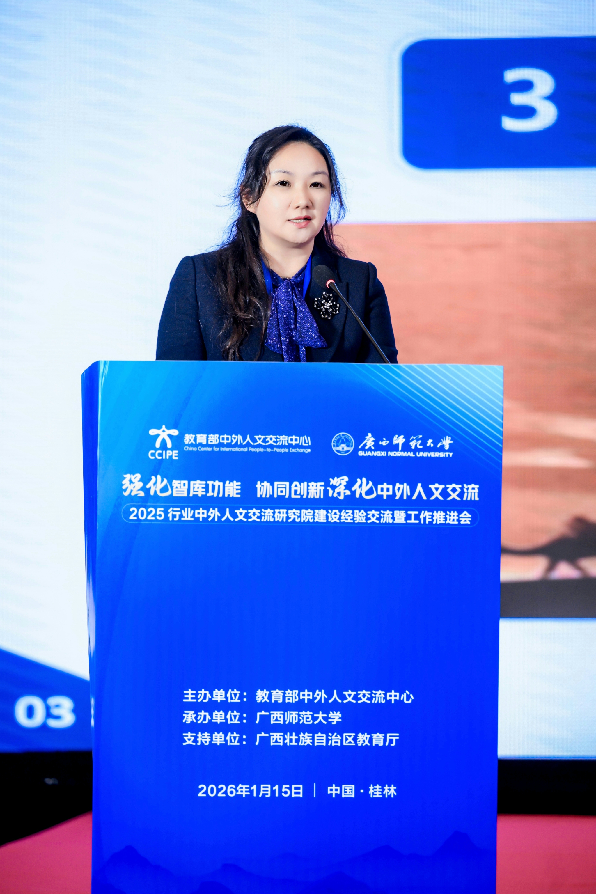 1月15日,2025行业中外人文交流研究院建设经验交流会暨工作推进会在广西召开。会议由教育部中外人文交流中心主办、广西师范大学承办,教育部中外人文交流中心主任于长学、副主任张学仁以及来自24所中外人文交流研究院的近100位代表参加了会议。我校校长刘畅应邀参加会议并作专题分享。