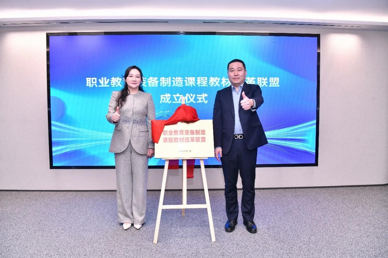 王志强、戎彬、许朝山、刘玉峰共同启动工业软件领域高技能人才集群培养计划培育项目。王志强与刘畅共同为职业教育装备制造课程教材改革联盟揭牌。联盟将依托国家教材建设重点研究基地,聚焦集群培养计划的重点改革任务,汇聚各方资源,开展系列研究、制订标准、组织培训、实施认证等。