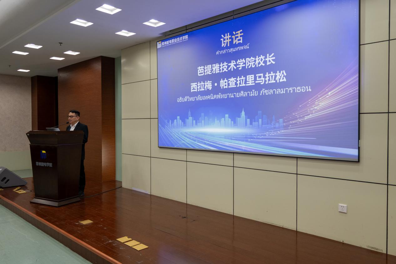 西拉梅对我校及双钱轮胎等企业长期以来给予的支持表示感谢,特别是在选派教师赴泰授课、为泰国学生争取奖学金与就业机会等方面做出的积极努力。他表示,芭提雅技术学院致力于服务泰国东部经济走廊建设,此次三方合作将为学生提供更贴合产业实际的技术培养路径,期待未来与我校、双钱轮胎持续深化合作,共同为区域经济发展输送高素质技能人才。