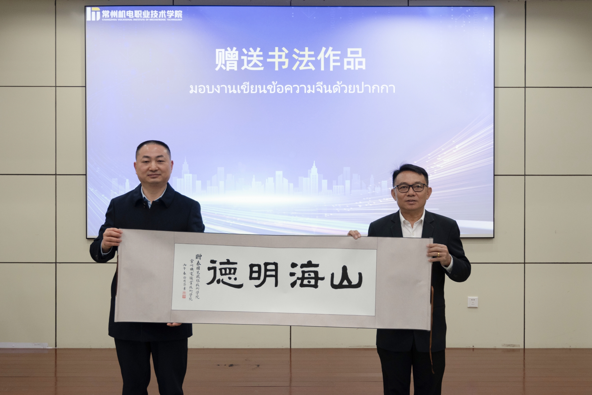 仪式上,三方代表为“泰国工程技术学院”和“国际现场工程师班”揭牌,并向泰方代表颁发兼职教授聘书。