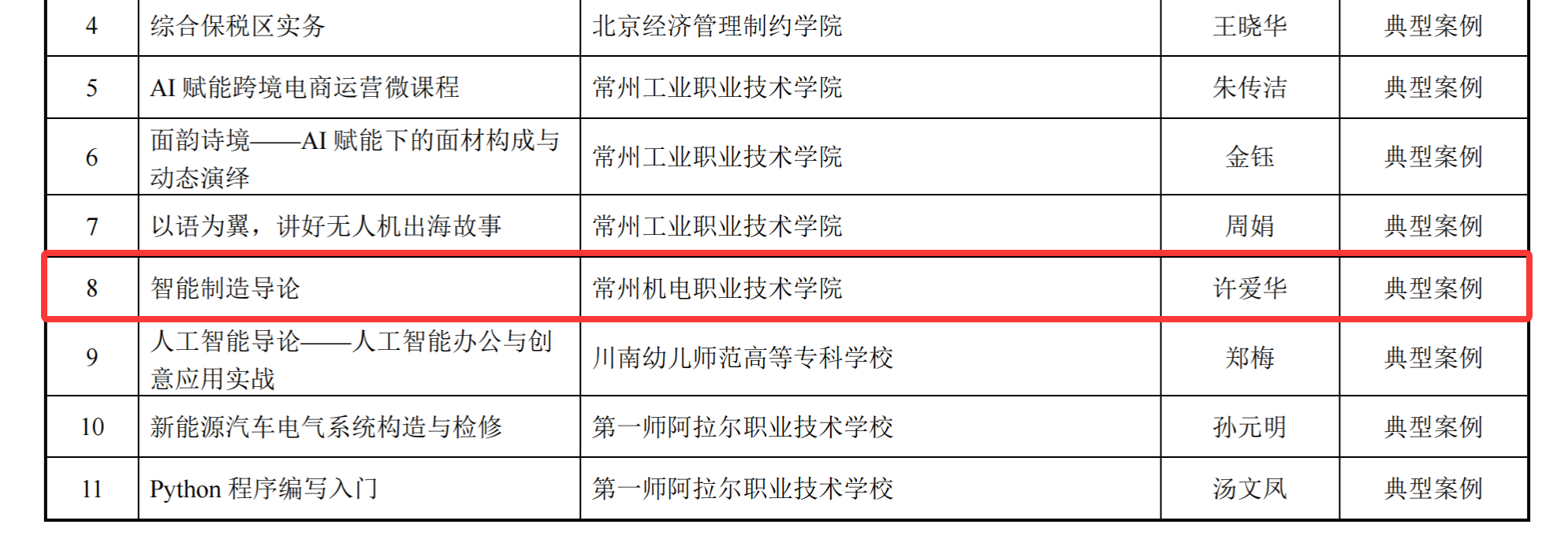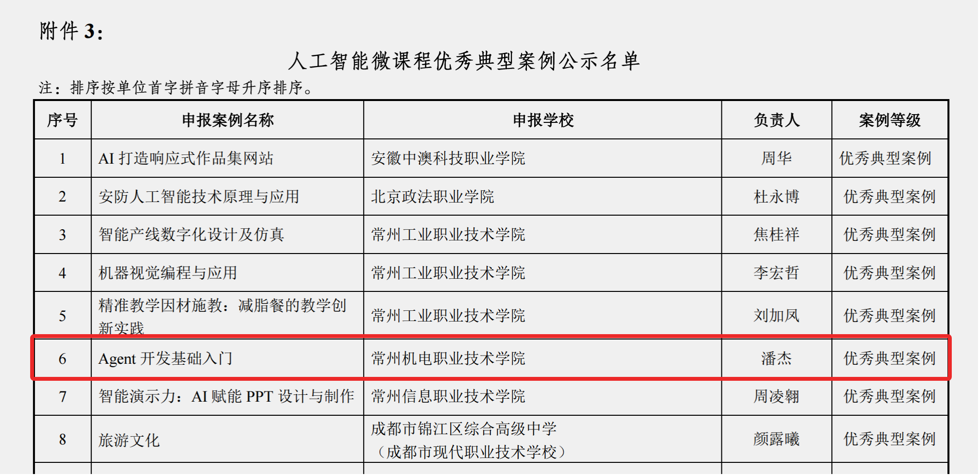 近日,教育部信息化教学指导委员会公布了关于人工智能应用典型案例的遴选结果。经各院校推荐、专家组严格评审与权威组织认定,我校2项案例入选。其中,经济管理学院潘杰申报的《Agent开发基础入门》获选优秀典型案例;机械工程学院许爱华申报的《智能制造导论》获选典型案例。